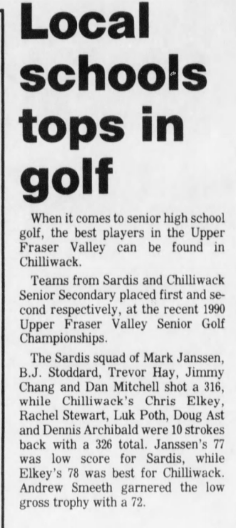 In high school, I played two years on the senior golf team at Chilliwack Senior Secondary. We were not exactly a powerhouse, but we got to play courses I never would have seen otherwise, and that felt like everything at the time. And yes, my best friend Doug was also on that team.